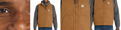When you need that extra layer out in the field, this warm, sherpa-lined vest is the one to keep handy. 12-ounce, 100% ring spun cotton washed duck Sherpa-lined body for warmth Left chest pocket with zipper closure Two interior pockets Two large, sherpa-lined handwarming front pockets Drop tail hem for added coverage Carhartt-strong, triple-stitched main seams for added durability Carhartt label sewn on left chest pocket Loose fit