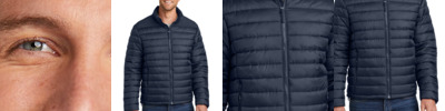 With horizontal baffles, a slight sheen and insulation that simulates down feathers, this is the newest puffy on the horizon. A water-resistant finish helps keep light rain out. 100% polyester shell and lining 2-way molded center front zipper Elastic cuffs Port Pocket for decoration access Hidden, reverse coil zippered hand pockets Insulation method: 10.1-oz. polyfill Water protection method: water-resistant finish on shell, PU coating on lining
