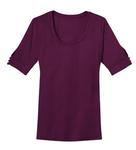 Create a feminine look with this lightweight top. Three-button trim and keyhole sleeve details make it perfect for week-to-weekend wear. 4.4-ounce, 62/33/5 poly/rayon/spandex Self-fabric scoop neck Double-needle hem Ladies Sizes: XS-4XL