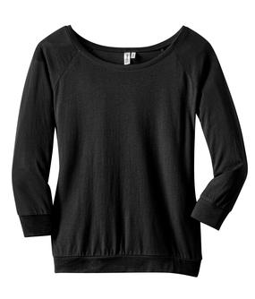 Team this raglan with denim for instant cool. 3.5-ounce, 60/40 ring spun combed cotton/modal 40 singles Feminine open neckline Ladies Sizes: XS-4XL