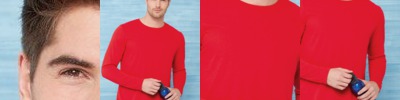 - Double-needle stitched sleeves, bottom hem and front neck