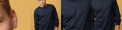 - Wide neckline and ribbed cuffs and waistband