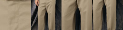- Two slack style front pockets, two set-in welted hip pockets