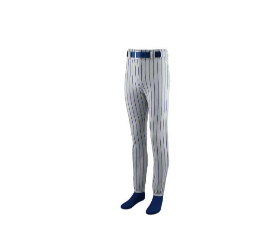 14-ounce 100% polyester double knit * Printed pinstripe * Anti-roll elastic waistband with seven pro-style belt loops * Two-snap closure * Brass zipper fly * Two set-in double welt back pockets (one on youth)* Reinforced double-needle coverstitched back rise side seams* Reinforced knees* 31-inch inseam on Adult Large* Elastic cuffs. Also available in Adult, Style 835. Available Colors
