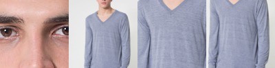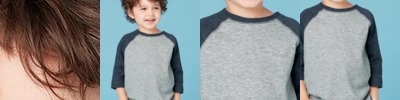 - Contrast color raglan sleeves, collar, "V", and waistband