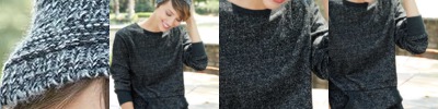 - Coverstitched ribbed knit binding on neck, shoulders and sleeves