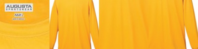 100% polyester wicking knit * Wicks moisture away from the body * Tear away label * Self-fabric binding at neck and armholes * Double-needle hemmed bottom