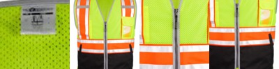 - Front and back reflective striping and fluorescent yellow/ green with color blocking