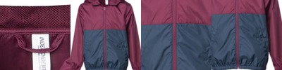 - Two large lower slash pockets with zippers