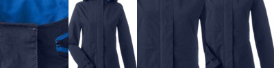 - Branded front zipper and storm flap