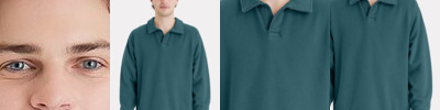 - Relaxed open neckline with twill placket and self-fabric collar