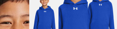 • UA woven label centered on left sleeve hem and UA heat seal center back neck