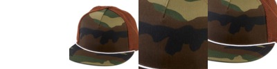 • Green Camo & Desert Camo are 97/3 cotton/ PU spandex, 100% polyester mesh back