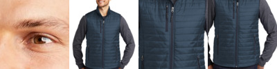 Staying warm while on the go has never been easier with our Packable Puffy Vests. Thanks to a water-repellent fabric coating and finish, you'll remain comfortable no matter where your day takes you. 100% polyester shell and lining 2.4-ounce, 100% polyfill insulation Interior storm flap with chin guard Reverse coil zippers Zippered chest pocket Front zippered pockets with rubber-wrapped zipper pulls Adjustable locking drawcord at hem Port Pocket ™ for decoration access Dyed-to-match drawstring carrying pouch included