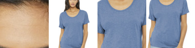 Slouchy fit Tear-away label Scoop neck Side seamed Subtle curved bottom hem Solid Colors: 3.7-ounce, 65/35 poly/viscose, 32 singles Triblend Colors: 3.8-ounce, 50/25/25 poly/Airlume combed and ring spun cotton/rayon, 40 singles