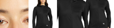 Before or after training, this layerable hoodie with stretch is casual-comfort perfection. 7.1-ounce, 57/38/5 modal/poly/spandex fleece OGIO heat transfer label for tag-free comfort 3-panel hood Cowl neck Metal grommets and dyed-to-match twill drawcords Princess seams Open hem Metal die cut O on front left hem Side vents