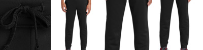 A flattering, moisture-wicking jogger with an adjustable drawcord waistband to accommodate a wide variety of body types. 7.1-ounce, 75/13/12 poly/cotton/rayon with PosiCharge technology Adjustable elastic interior waistband with exterior drawcord Tear-away removable label Front pockets 1x1 rib knit cuffs